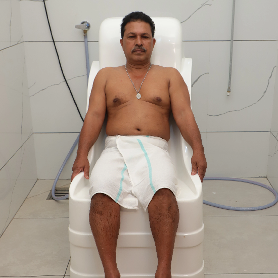Hip bath is given in various temperatures in a special hip-bath-tub which helps to stimulate the circulation towards the pelvic and digestive organs. It not only relieves